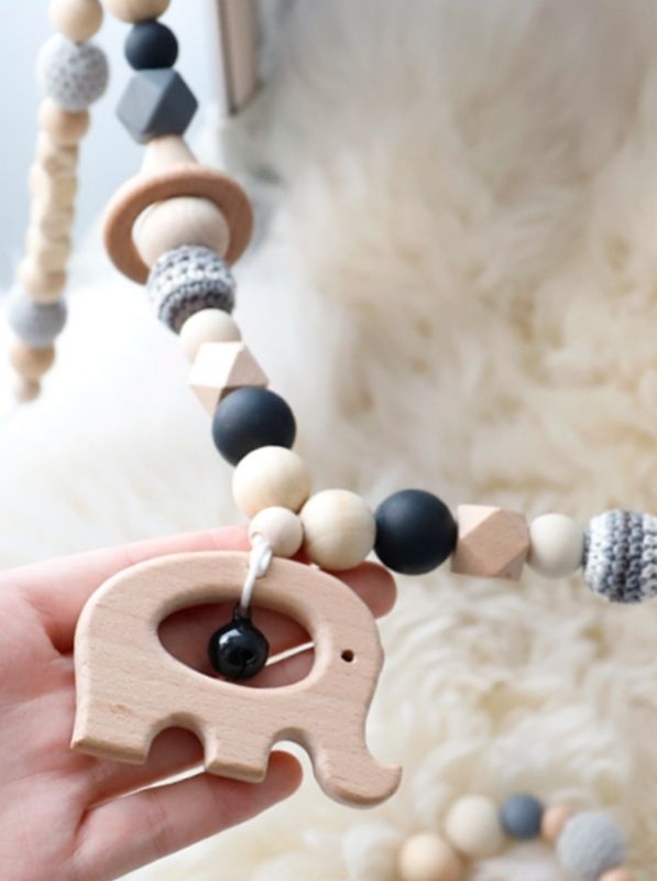 Vaši malčki lahko tako brezskrbno žvečijo in grizljajo po mili volji, saj je lesena obešanka za voziček varna za uporabo. Otroku največ damo, če mu ponudimo naravne materiale in igrače narejene iz naravnih surovin. Lesene igrače so brezčasne, okolju prijazne in ne vsebujejo kemikalij, ki se mnogokrat uporabljajo v plastičnih igračah.